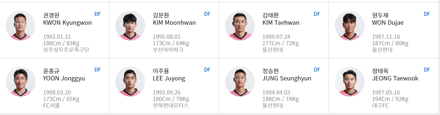 한국 축구 국가대표 명단 끝.
